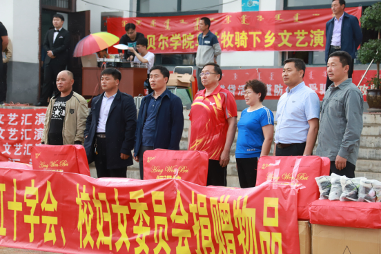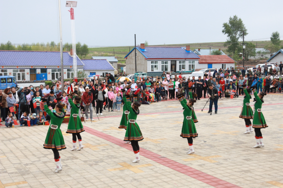 “爱心零距离 暖情传兴安”呼院乌兰牧骑精心准备的文艺演出在马头琴乐队的马头琴齐奏《骏马》《万马奔腾》旋律中震撼展开, 声乐队的男声齐唱《红旗飘飘》,民族声乐队女声独唱《站在草原望北京》,萨克斯、单簧管合奏《我爱祖国蓝天》等旋律中,全场群众挥舞五星红旗,同唱共鸣;舞蹈队的俄罗斯舞蹈《喀秋莎》、鄂温克族舞蹈《漂亮的考考乐》、朝鲜族舞蹈等为乡亲们带来少数民族风情,歌曲《长鼓敲起来》、萨克斯合奏《天边》,乡亲们在民族团结的生活中感受各民族共同发展的幸福生活;兴安镇联合村组织村民的秧歌舞为民族声乐队男声齐唱《咱屯儿里的人》《家在东北》进行伴舞,将现场气氛推向高潮;夏颖杰老师的独唱《祝妈妈长寿》表达了对母亲的美好祝福;在迎风飘扬的旗帜下,全体演员激情合唱《永远的乌兰牧骑》,呼院乌兰牧骑践行习总书记为乌兰牧骑回信精神,做红色文艺轻骑兵,服务基层、服务农牧区,助力脱贫攻坚,致力乡村振兴! 在呼院乌兰牧骑演员与村民们载歌载舞的秧歌活动中,演出圆满结束。