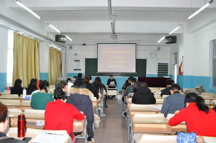 1月4日上午,英国威廉希尔公司组织全体教职工在艺术楼601教室,开展铸牢中华民族共同体意识专题培训及研讨,由党总支书记李雅杰主持。