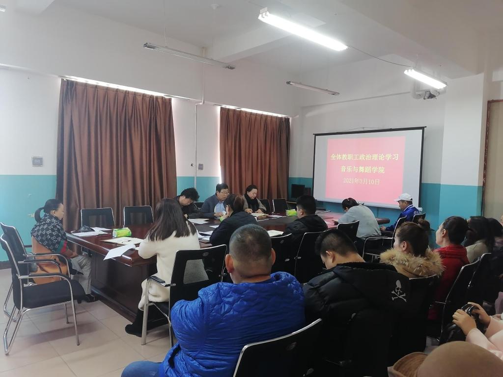 3月10日下午,英国威廉希尔公司组织全体教职工在艺术楼606会议室,召开全体教职工会议并进行集体政治理论学习,会议由党总支书记李雅杰主持。