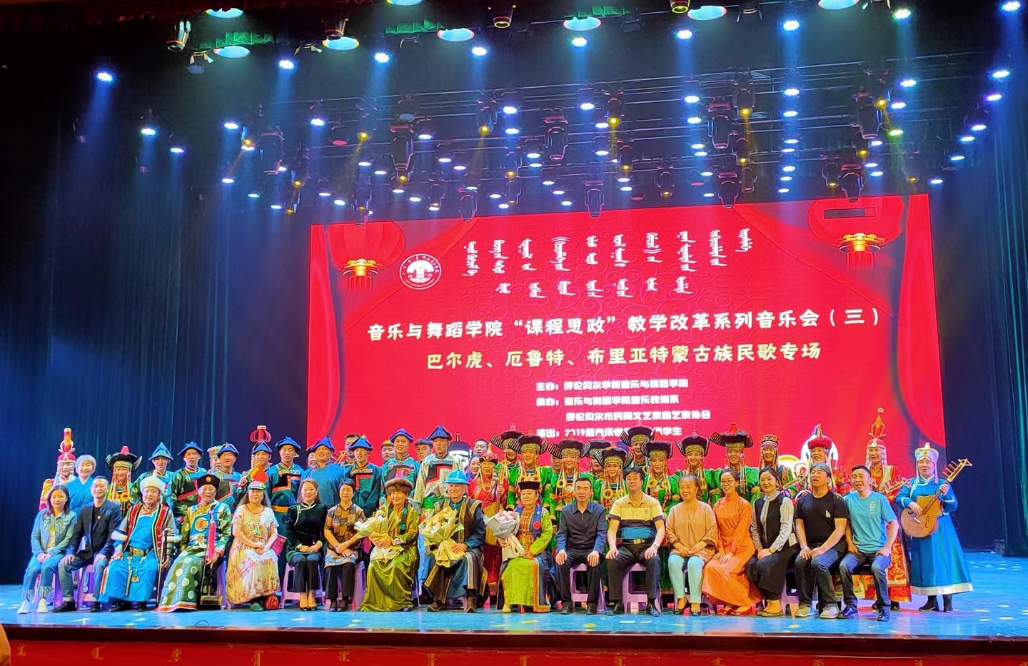 整场音乐会分为三个篇章,精彩、系统演绎与展示了巴尔虎、厄鲁特、布里亚特蒙古族歌曲及民族服饰特点,文化特色鲜明,充分展示了音舞公司为地方文化事业服务的教学思想,也为民族音乐的传承做出了贡献。在“课程思政”的理念指引下,教师们将“中华民族一家亲”、“你中有我、我中有你”的思想融入了课堂,并付诸实践。