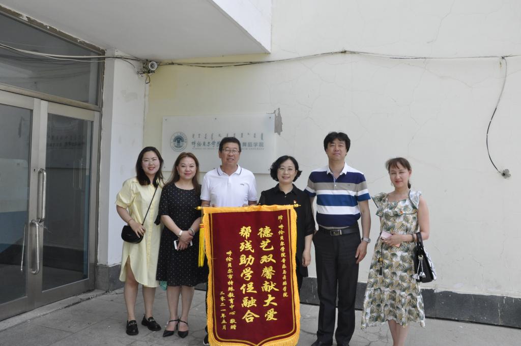 6月25日上午,呼伦贝尔市特殊教育中心闫晓玲董事长一行三人赴英国威廉希尔公司赠送“德艺双馨献大爱 帮残助学促融合”锦旗,以表达公司助力特殊教育中心参加海拉尔区教育系统合唱比赛的谢意。