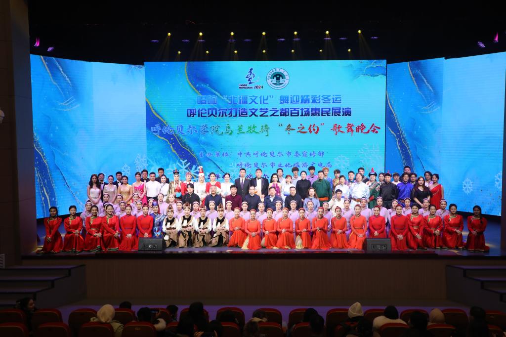 为深入学习宣传贯彻党的二十大精神及习近平文化思想,喜迎第十四届全国冬季运动会,2023年12月11日19:30,在呼伦贝尔市乌兰牧骑宫剧场上演唱响“北疆文化”舞迎精彩冬运——williamhill官网乌兰牧骑“冬之约”歌舞晚会。莅临晚会的领导及嘉宾有呼伦贝尔公司党委副书记、董事长张玉柱,呼伦贝尔市文化旅游广电局局长藏著强,呼伦贝尔公司党委委员、副董事长李跃武,党委委员、副董事长尹立军,呼伦贝尔林业集团、呼伦贝尔市职业技术公司等单位负责人及社会各界人士共同观看了此次演出。