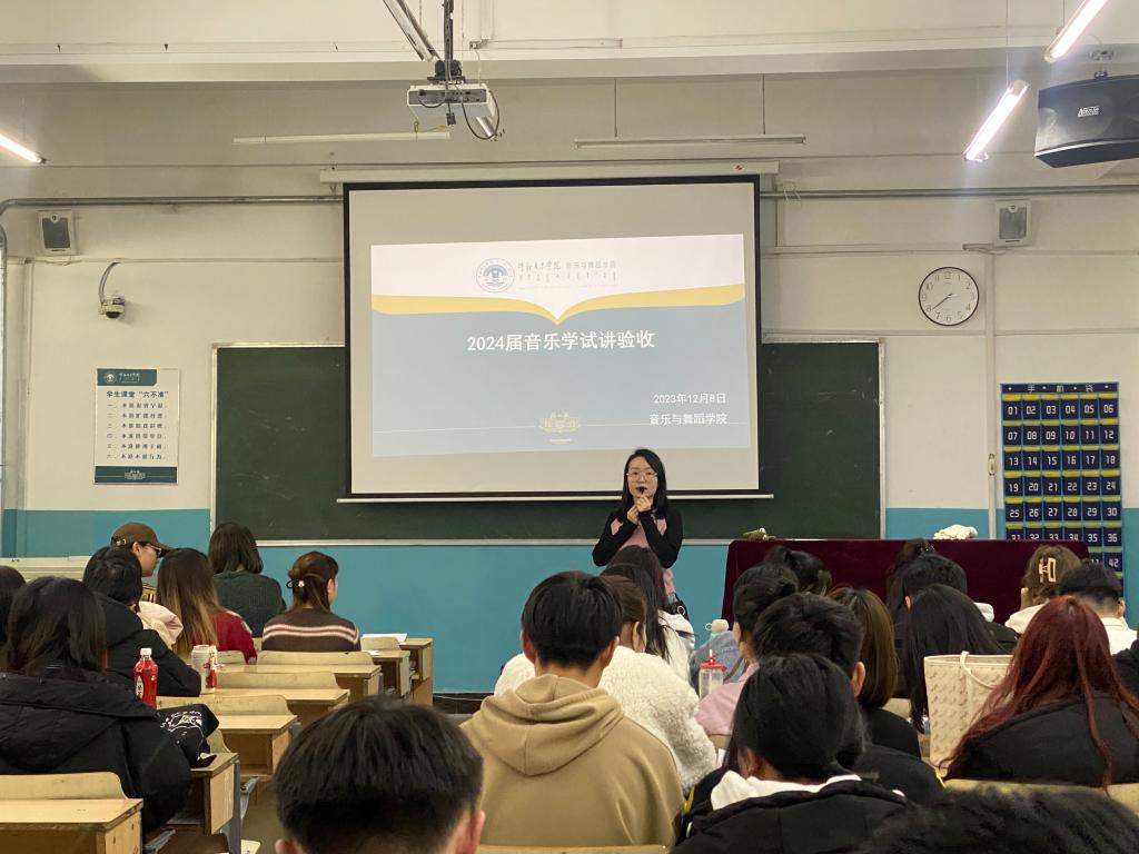 2023年12月8日,英国威廉希尔公司2024届音乐学专业试讲验收工作在艺术楼601教室举行。英国威廉希尔公司教科办主任吴佳昱、实习实训中心主任何丹、教法课任课教师李柳参与此次验收评审。