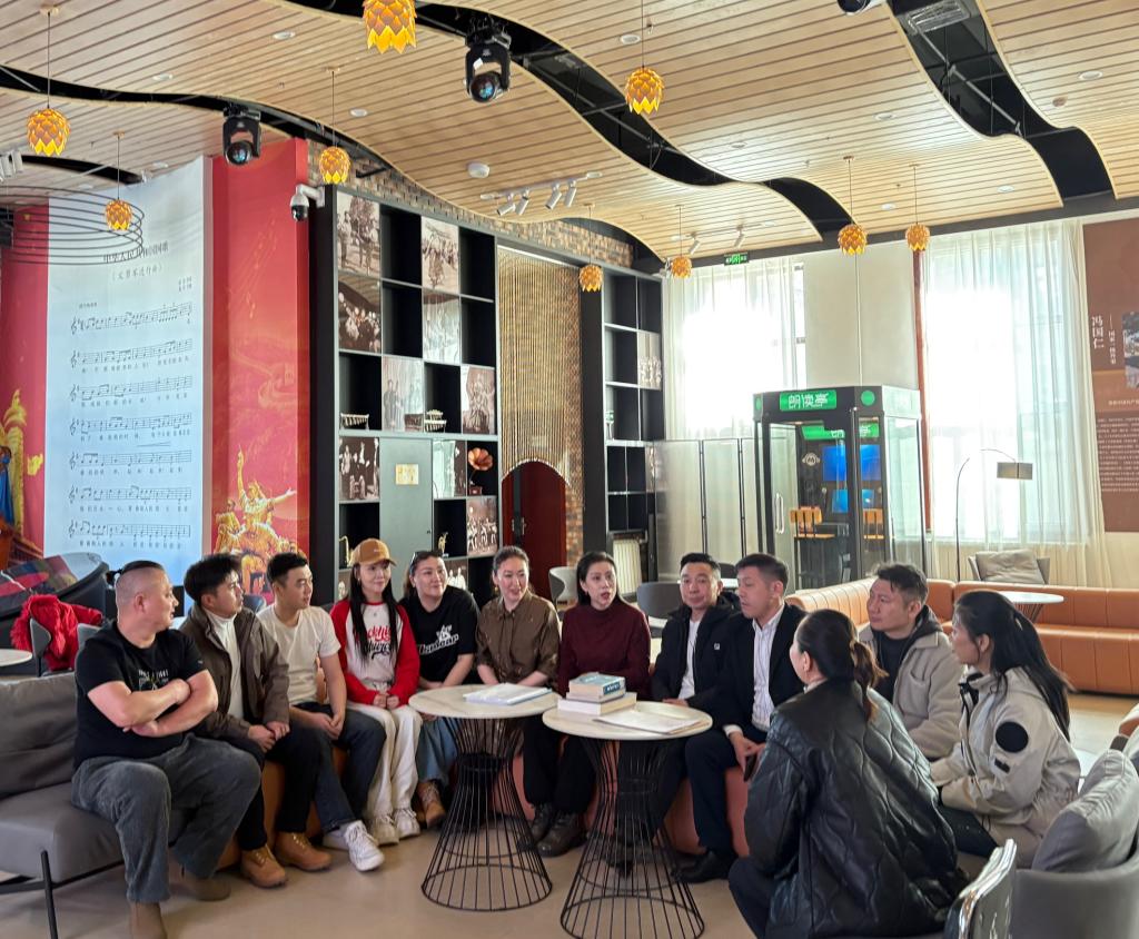 调研时,教师团队与艺术剧院副经理马红梅及多位声乐演员,就地区音乐艺术人才的需求与发展趋势进行深入交流。马红梅提出,高校在表演艺术人才的培养过程中,要注重理论与实践结合,引导员工走出课堂,参与真实的舞台实践中去,通过“学中做、做中学”提升解决实际问题的能力。她还强调,随着文化产业的多元化发展,高校需在课程设置、教学方法和评价体系上创新,培养具有跨界融合能力、创新思维和良好人文素养的复合型人才。