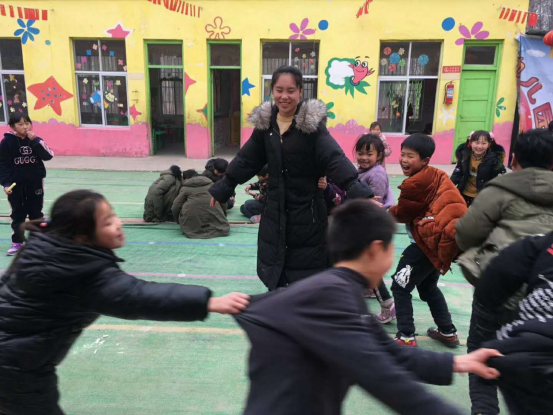 由于河南的冬季环境是不同于北方的,所以我在支教的过程中我看到有的孩子手、耳朵都已经冻伤了,但是他们仍然在坚持写作业。我们去镇上药店里买了冻伤膏,每天都会定时为他们上药。我们除了教课之外还陪员工们做游戏、我们队员一起给当地的村民表演公司特色的民族民间广场舞,村民们非常愿意看。