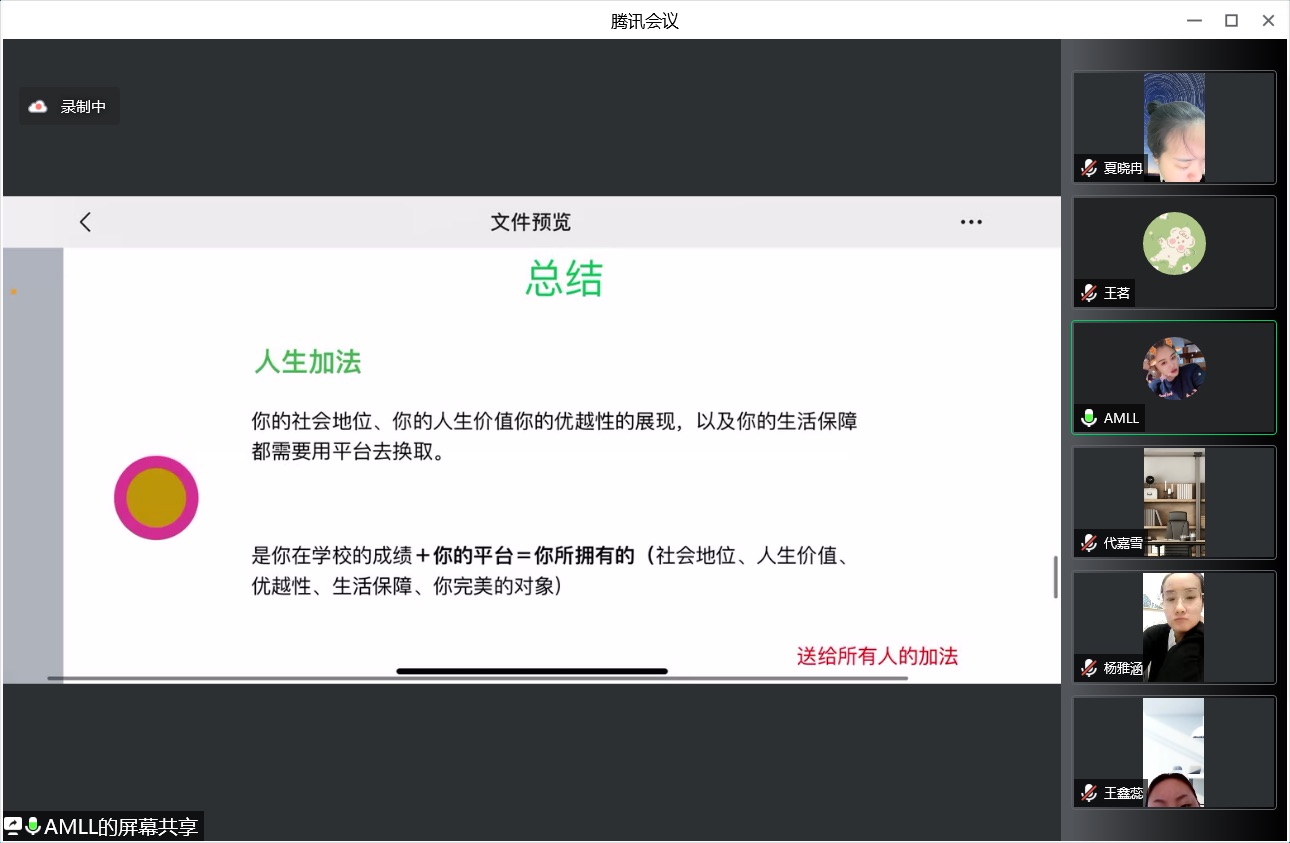 分享会结束后,白昆老师作了总结发言。她希望同学们通过此次职业规划与就业经验员工分享会能够意识到大学是一个人世界观、人生观和价值观的关键时期,也是一个人成熟起来的重要阶段。大学期间做好职业规划,毕业后才不至于手忙脚乱,迷茫度日。希望每一位同学能清楚的知道自己想要什么,想做什么,然后为之去努力奋斗!
