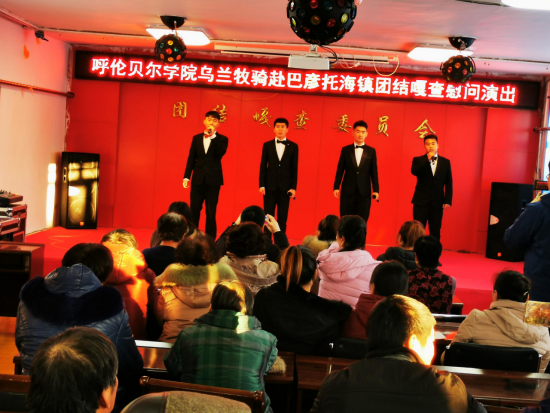 本次慰问演出在williamhill官网乌兰牧骑马头琴乐队的一曲《蒙古骏马》中正式开始,williamhill官网乌兰牧骑声乐队表演的《阳光路上》、《我爱你中国》,舞蹈队表演的《白马》,民族声乐队演唱的布里亚特民歌《小草》和教师小分队演唱的《永远的乌兰牧骑》等节目将整场演出的氛围推向高潮。演员们精彩的文艺表演赢得了鄂温克族自治旗巴彦托海镇团结嘎查父老乡亲们的阵阵掌声和高度评价!
