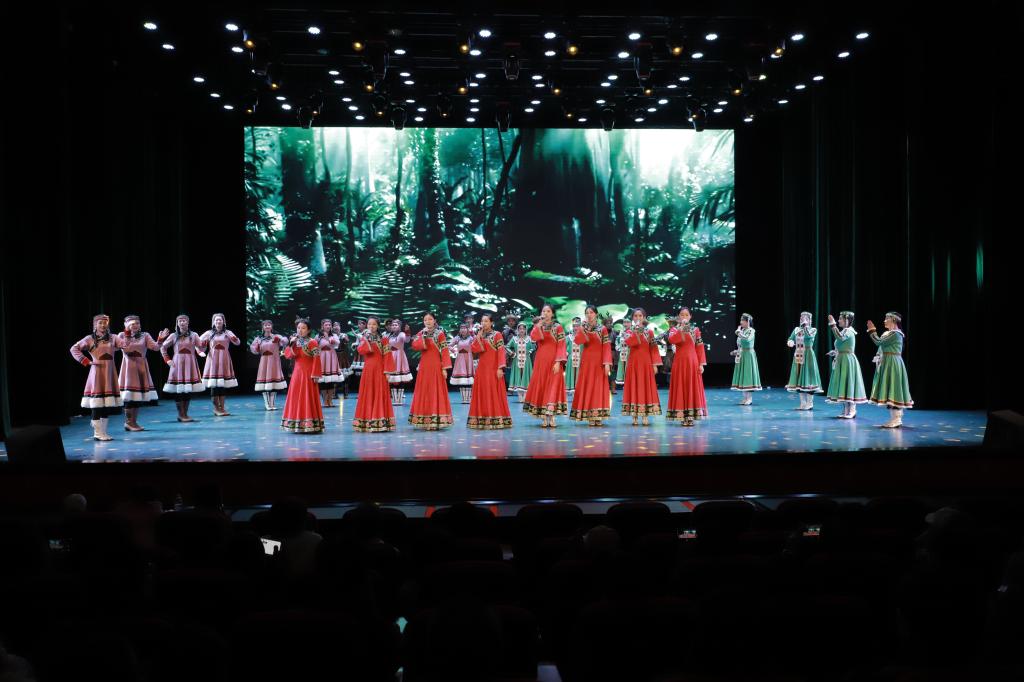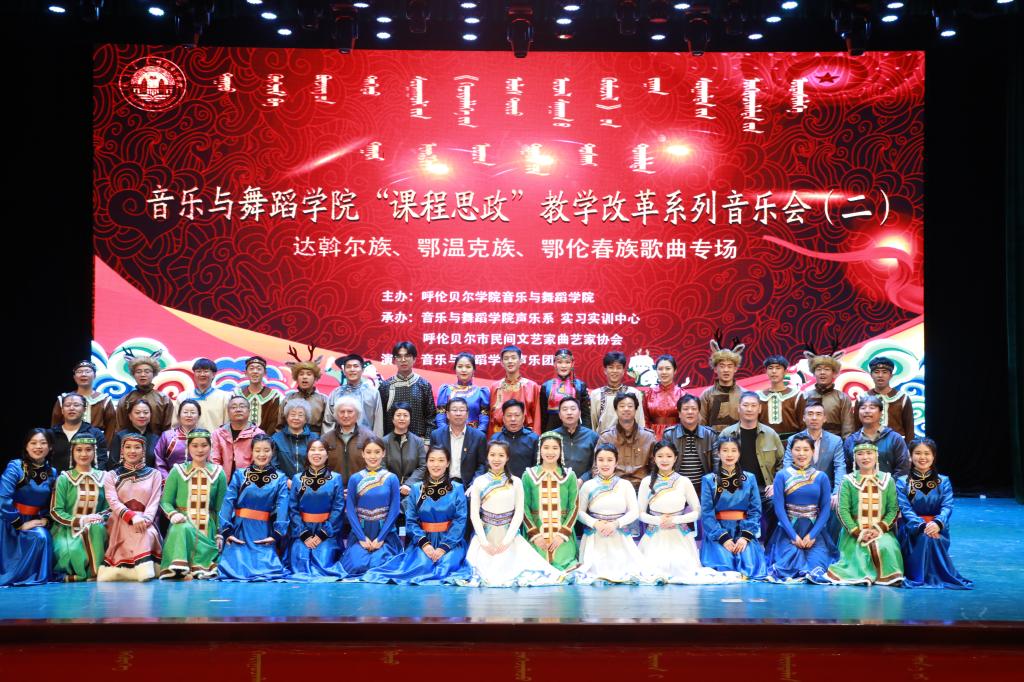 整场音乐会,声乐团的汉族员工分别用汉语、达斡尔语、鄂温克语和鄂伦春语演唱了当地的少数民族歌曲,文化特色鲜明,充分展示了音舞公司为地方文化事业服务的教学思想,也为民族音乐的传承做出了贡献。在“课程思政”的理念指引下,教师们将“中华民族一家亲”、“你中有我、我中有你”的思想融入了课堂,并付诸实践。