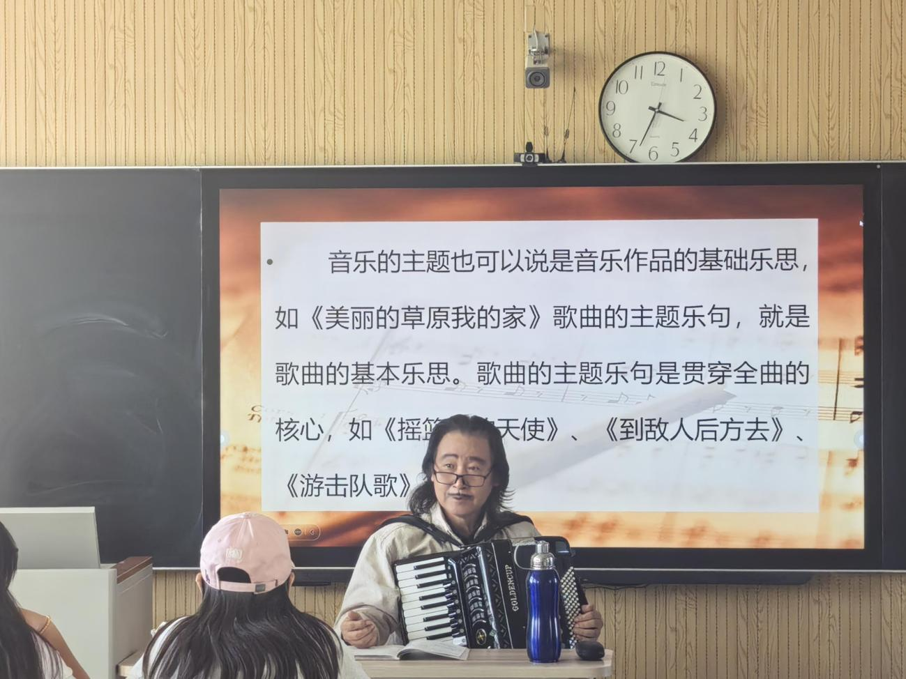 金教授强调,歌曲创作不仅需要技术支撑,更应深入文化语境、扎根民族传统。他以创作歌曲《美丽的草原我的家》《游击队之歌》等为例,解析了如何从民族音乐元素中提炼主题,并转化为具有当代审美意义的音乐语言。此外,他还就音乐理论与创作实践的结合、如何在教学中培养员工的创作思维等问题,与在场师生进行了深入交流。